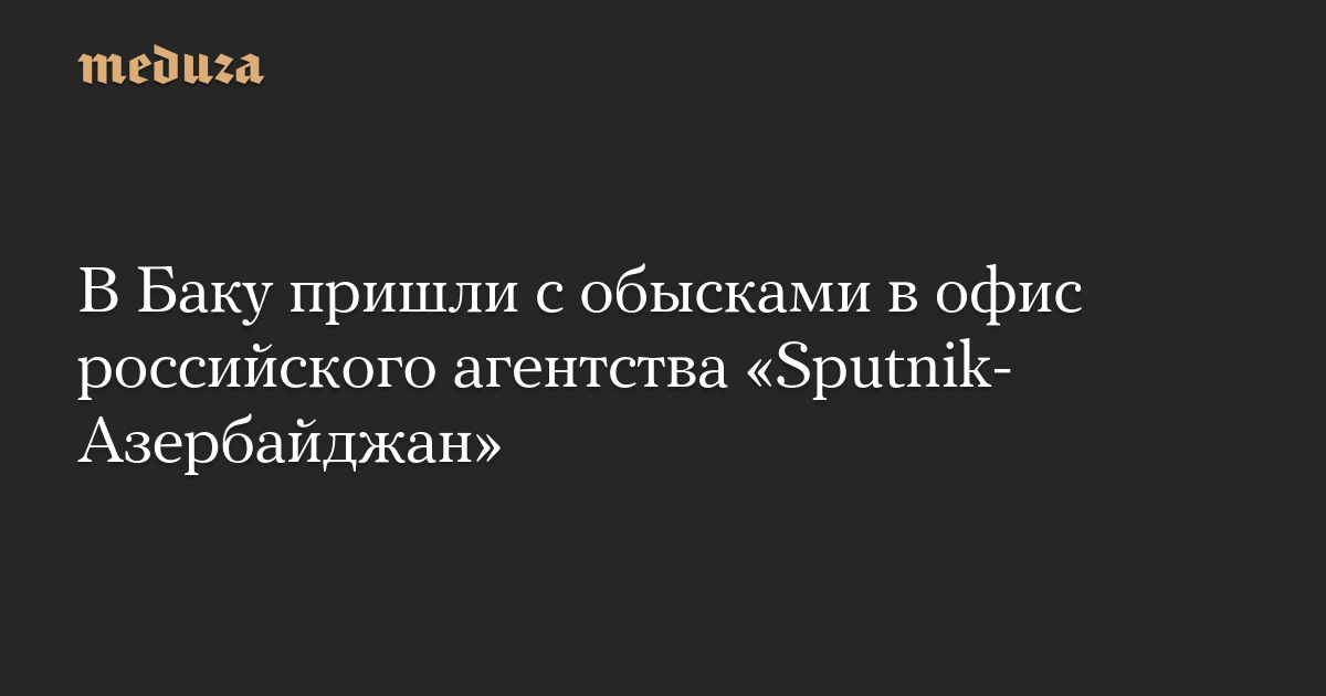 В Баку пришли с обысками в офис российского агентства «Sputnik-Азербайджан»