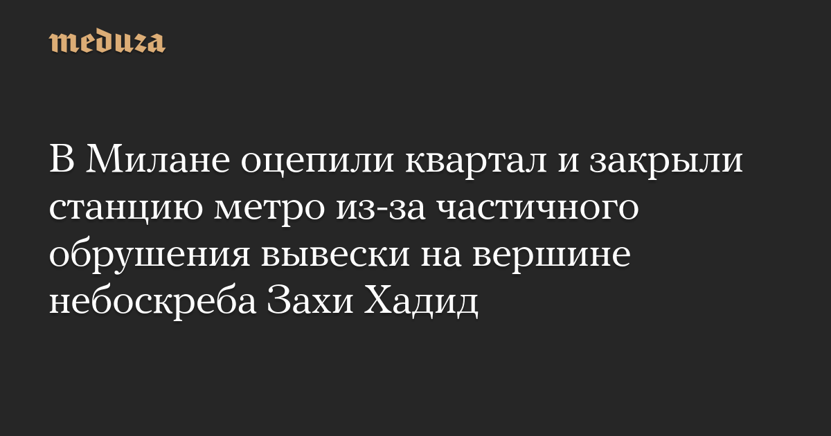В Милане оцепили квартал и закрыли доступ к станции метро из-за частичного обрушения вывески на вершине небоскреба Захи Хадид, сообщает La Stampa.