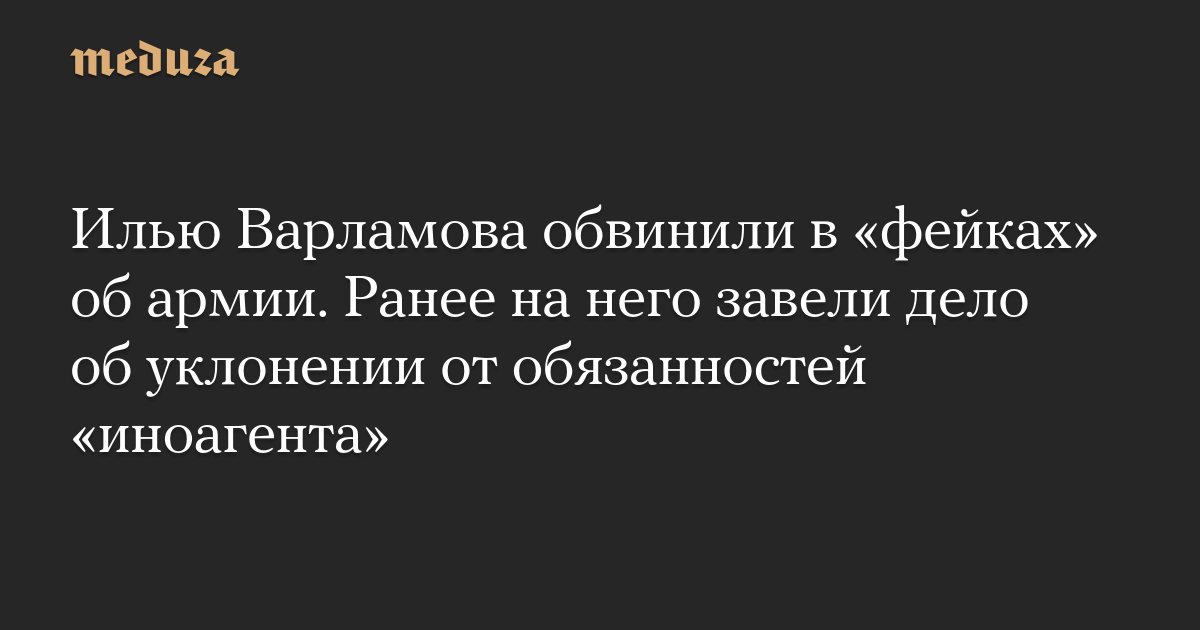 Из этого сообщения стало известно, что Варламову заочно предъявили обвинение не только в уклонении от обязанностей «иностранного агента» (часть 2 статьи 330.1 УК), но и в распространении военных «фейков» (пункт «д» части 2 статьи 207.3 УК). На заявление прокуратуры обратила внимание «Медиазона».