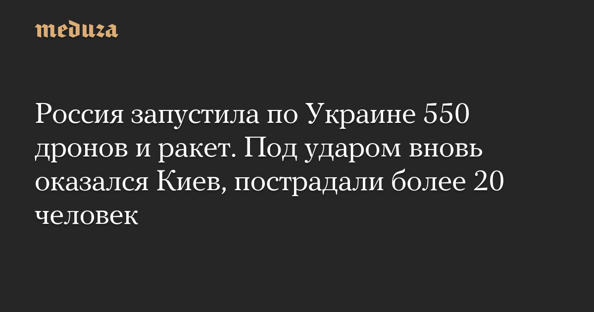 Россия запустила по Украине 550 дронов и ракет. Под ударом вновь оказался Киев, пострадали более 20 человек