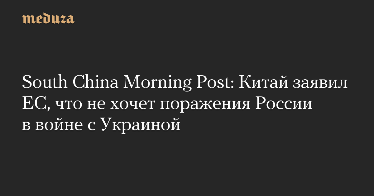 South China Morning Post: Китай заявил ЕС, что не хочет поражения России в войне с Украиной