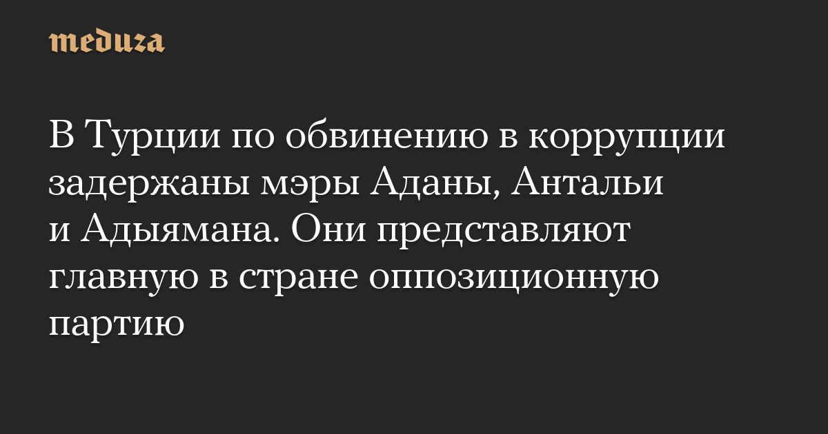 В Турции по обвинению в коррупции задержаны мэры Аданы, Антальи и Адыямана. Они представляют главную в стране оппозиционную партию