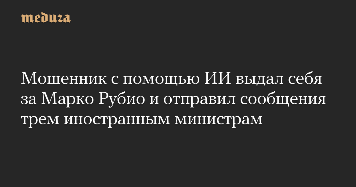 Неизвестный мошенник выдал себя за госсекретаря США Марко Рубио и вступил в переписку с американскими и иностранными официальными лицами, включая трех министров, пишет The Washington Post.