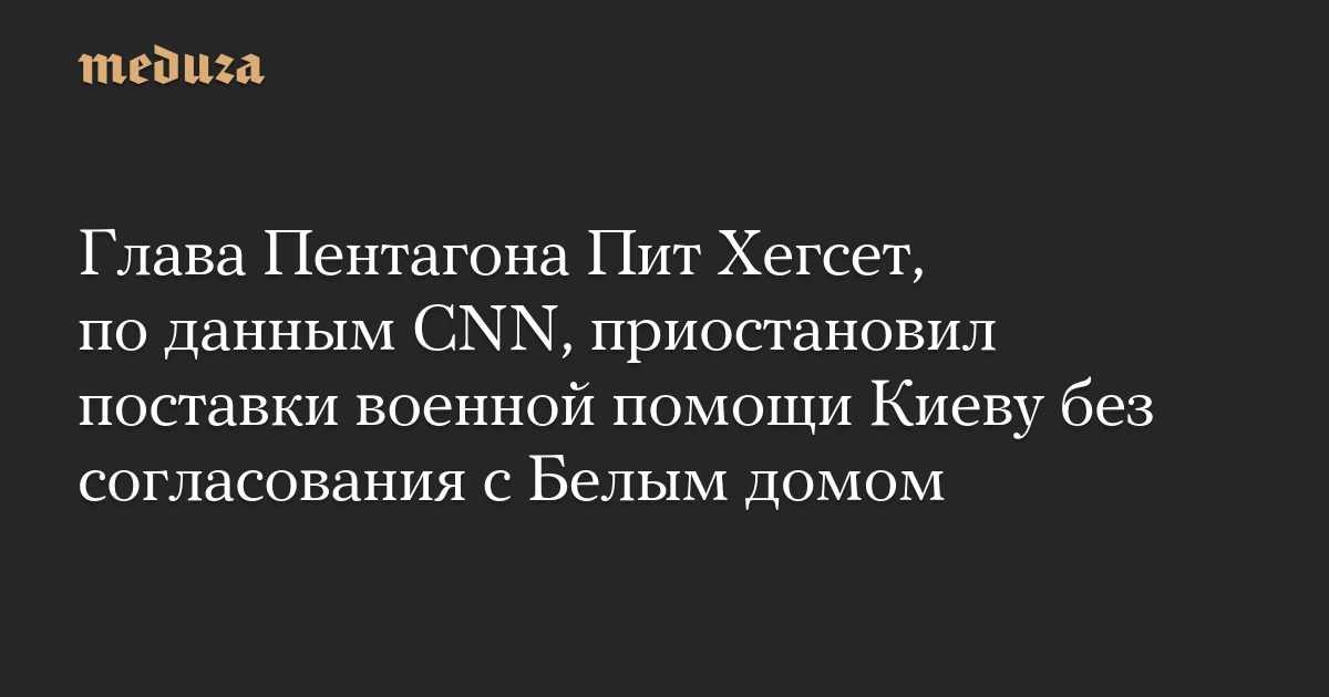 Глава Пентагона Пит Хегсет, по данным CNN, приостановил поставки военной помощи Киеву без согласования с Белым домом