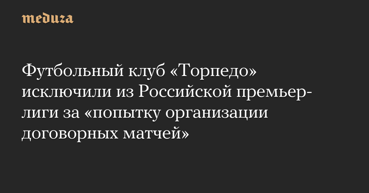 Футбольный клуб «Торпедо» исключили из Российской премьер-лиги за «попытку организации договорных матчей»