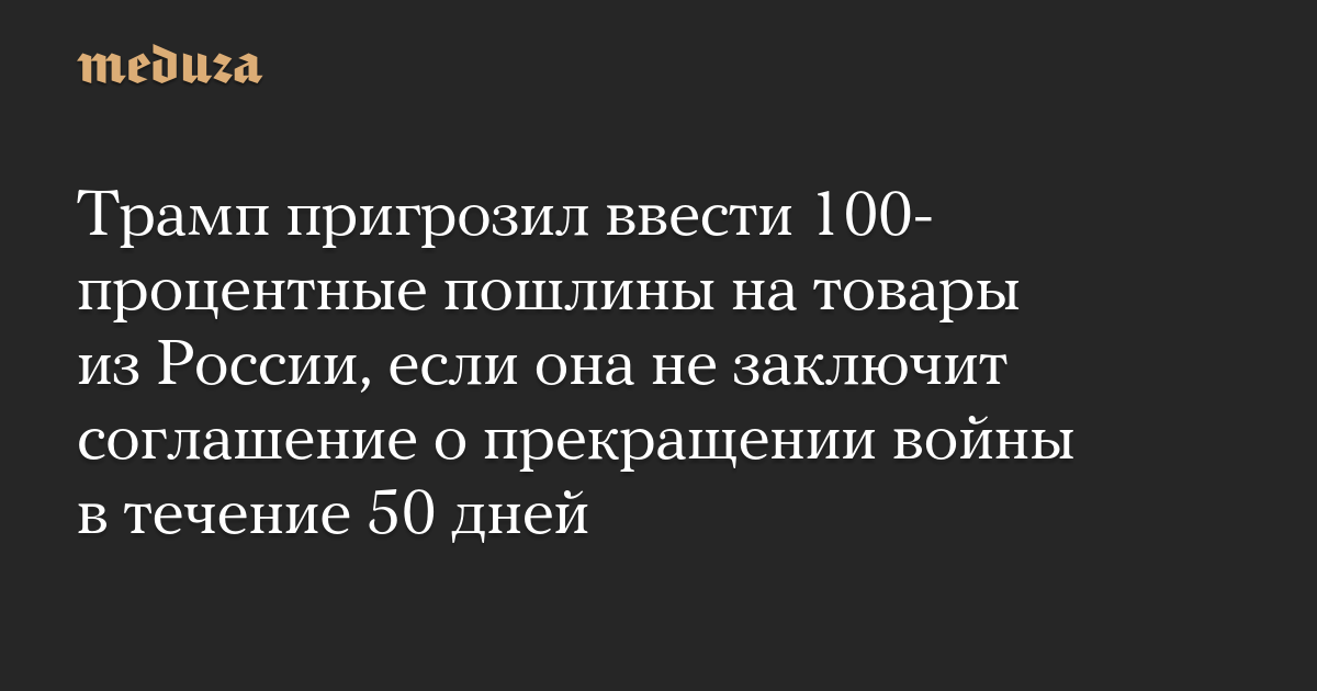 Трамп пригрозил ввести 100-процентные пошлины на товары из России, если она не заключит соглашение о прекращении войны в течение 50 дней