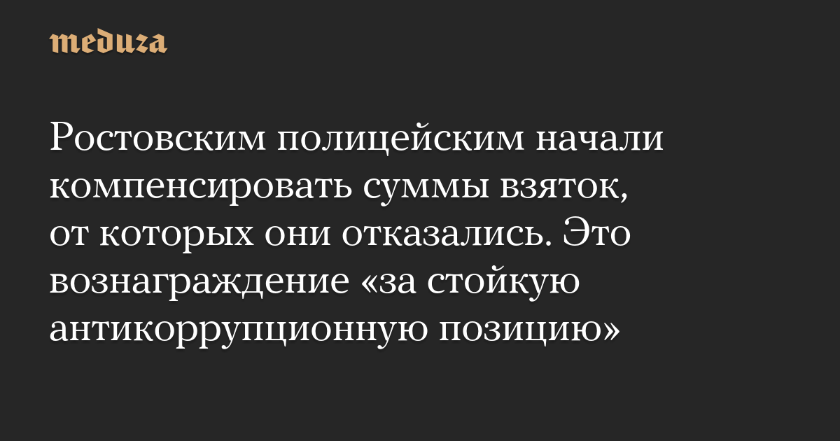 Ростовским полицейским начали компенсировать суммы взяток, от которых они отказались. Это вознаграждение «за стойкую антикоррупционную позицию»