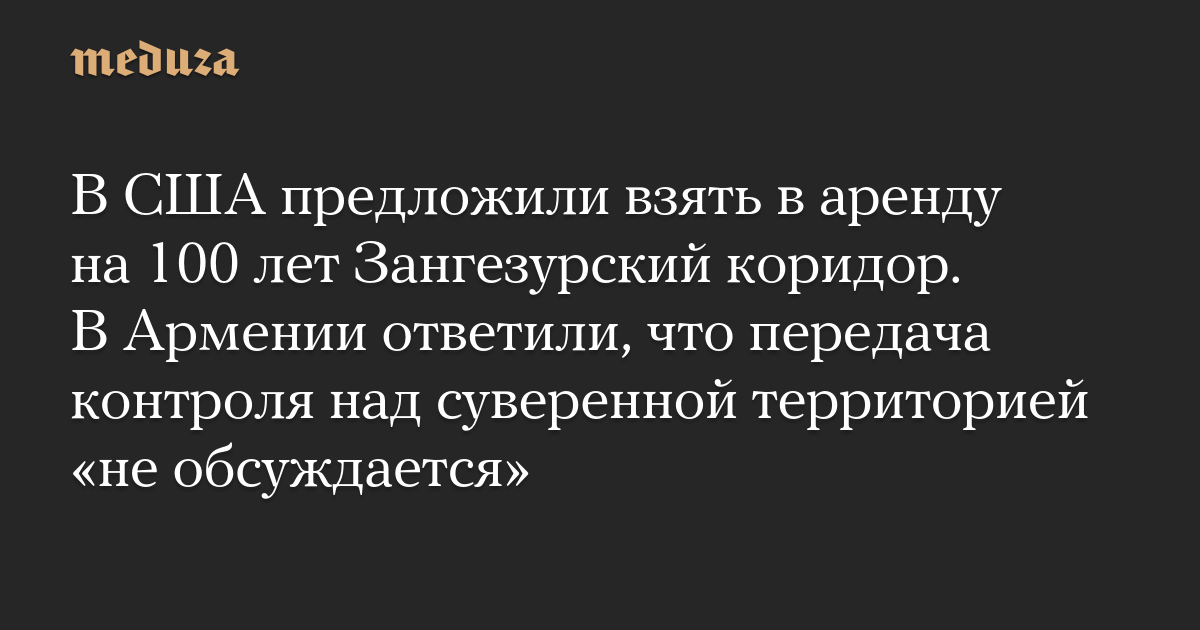 В США предложили взять в аренду на 100 лет Зангезурский коридор. В Армении ответили, что передача контроля над суверенной территорией «не обсуждается»
