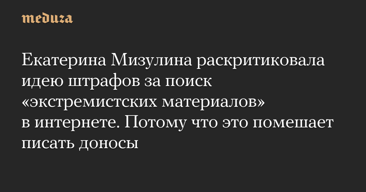 Глава Лиги безопасного интернета Екатерина Мизулина подвергла критике инициативу Госдумы, предусматривающую штрафы за поиск запрещенных материалов в интернете, в том числе с использованием VPN-сервисов.