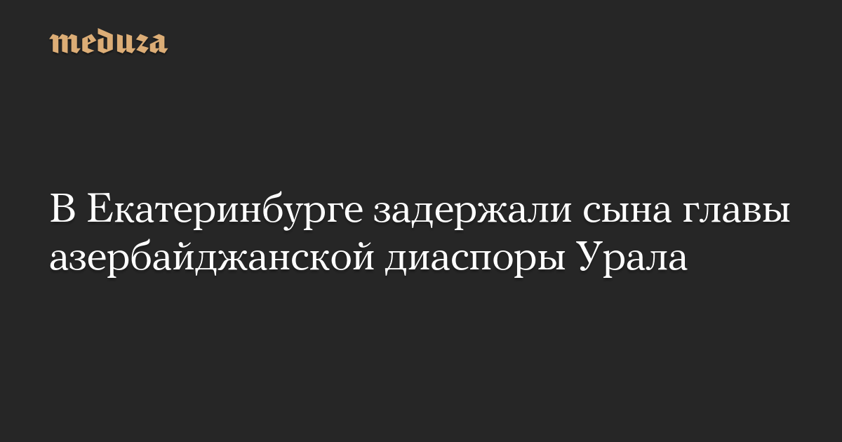 В Екатеринбурге вечером 15 июля был задержан сын главы азербайджанской диаспоры Урала Мутвалы Шыхлински, сообщают Ura.ru и E1 со ссылками на источник. Задержание также подтвердил источник РБК.