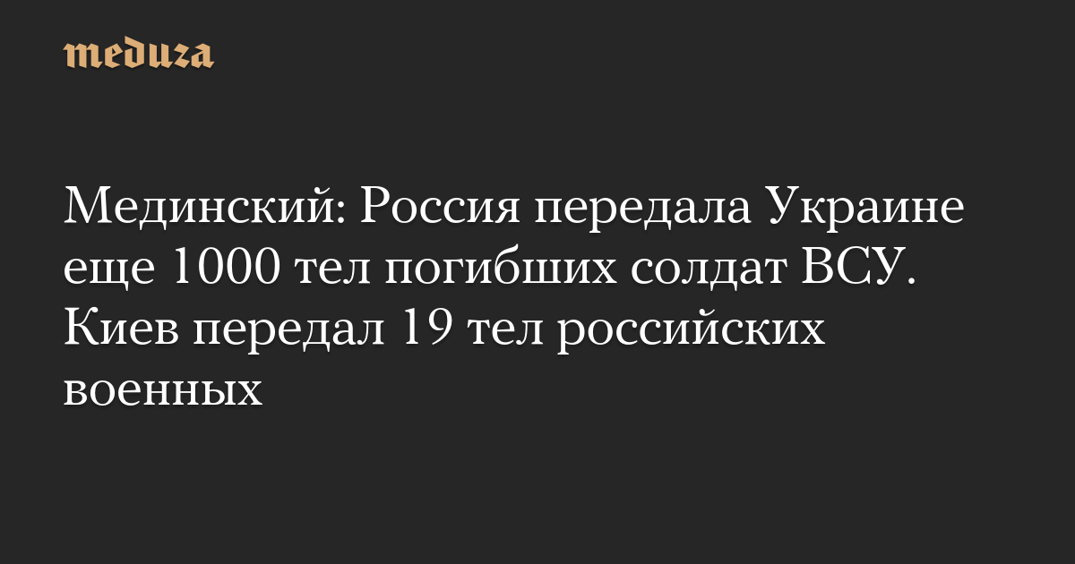 Мединский: Россия передала Украине еще 1000 тел погибших солдат ВСУ. Киев передал 19 тел российских военных
