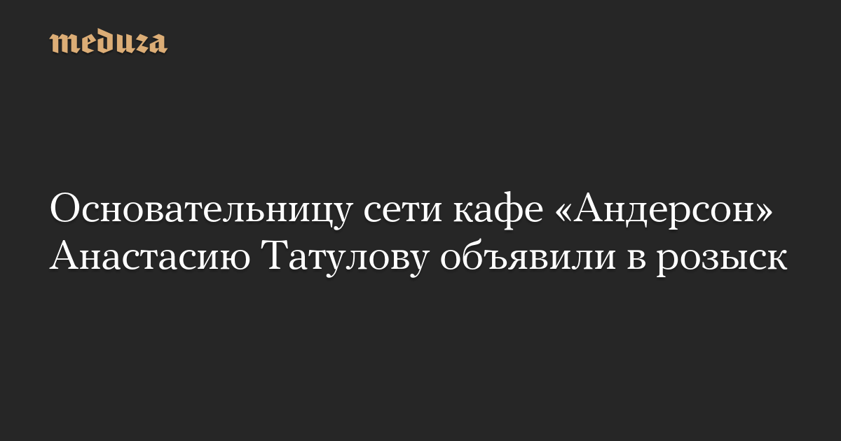 МВД России объявило в розыск основательницу сети кафе «Андерсон» Анастасию Татулову. На ее карточку в базе розыска ведомства обратила внимание «Медиазона».