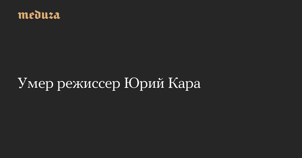 Кинорежиссер Юрий Кара умер в возрасте 70 лет, сообщили «Интерфаксу» в Союзе кинематографистов России. Кара умер в Ялте. «Московский комсомолец» сообщил, что у режиссера был инфаркт.