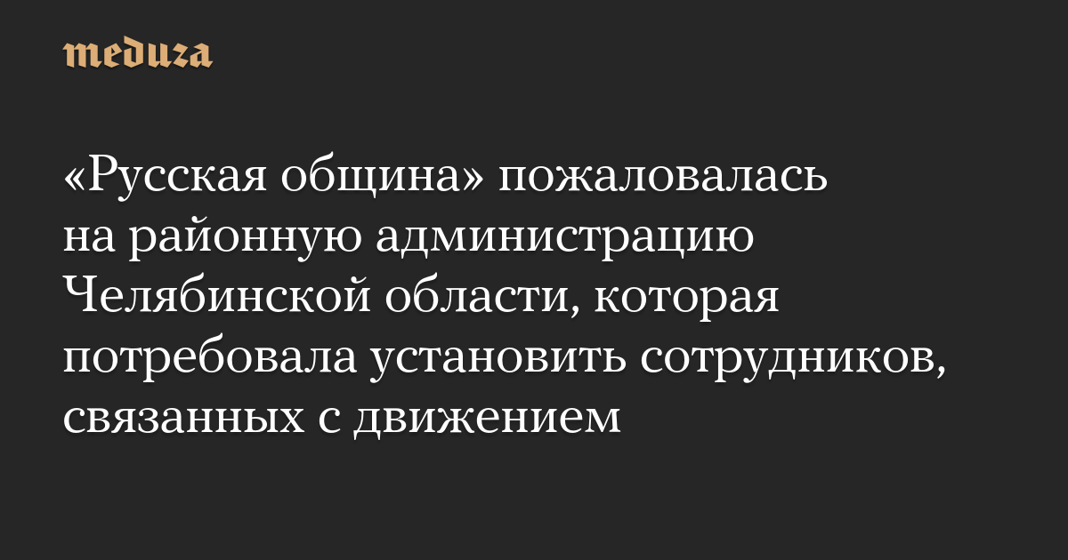 «Русская община» пожаловалась на районную администрацию Челябинской области, которая потребовала установить сотрудников, связанных с движением