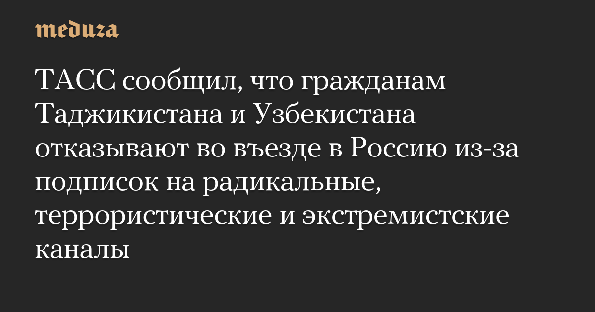 ТАСС сообщил, что гражданам Таджикистана и Узбекистана отказывают во въезде в Россию из-за подписок на радикальные, террористические и экстремистские каналы