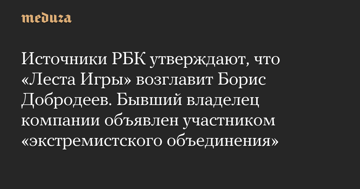 Источники РБК утверждают, что «Леста Игры» возглавит Борис Добродеев. Бывший владелец компании объявлен участником «экстремистского объединения»