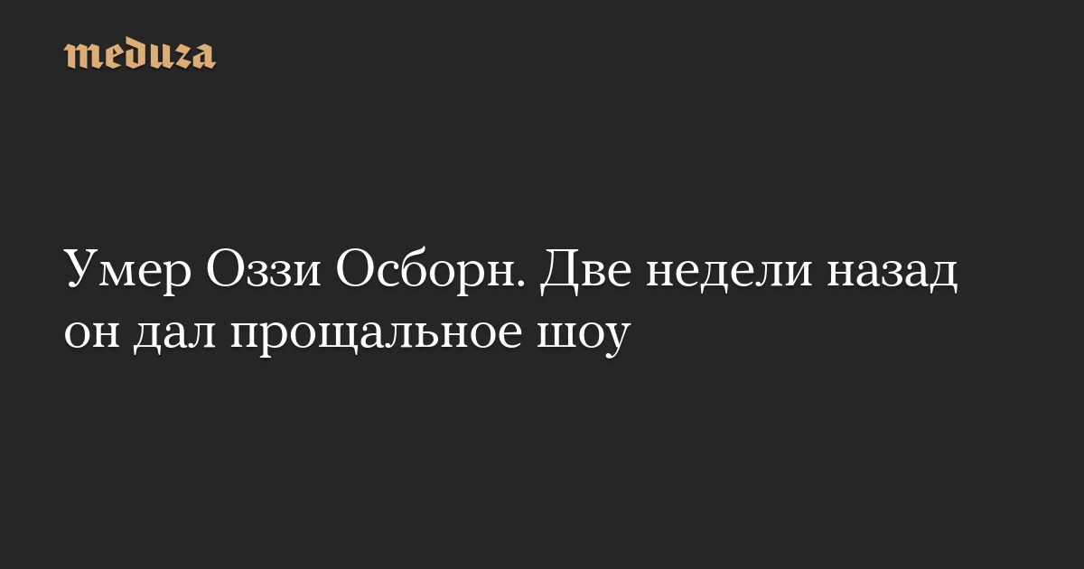 Умер Оззи Осборн. Две недели назад он дал прощальное шоу