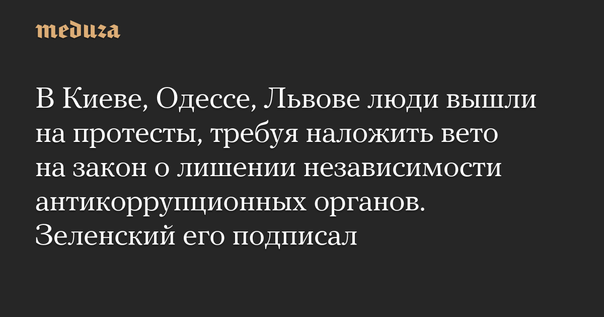 В Киеве, Одессе, Львове люди вышли на протесты, требуя наложить вето на закон о лишении независимости антикоррупционных органов. Зеленский его подписал