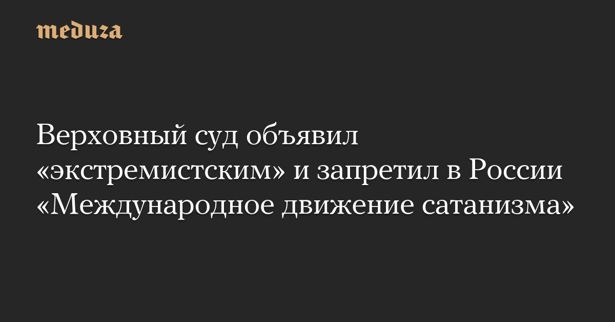 Верховный суд РФ постановил признать «экстремистским» и запретить на территории страны деятельность «Международного движения сатанизма», сообщает «Медиазона».