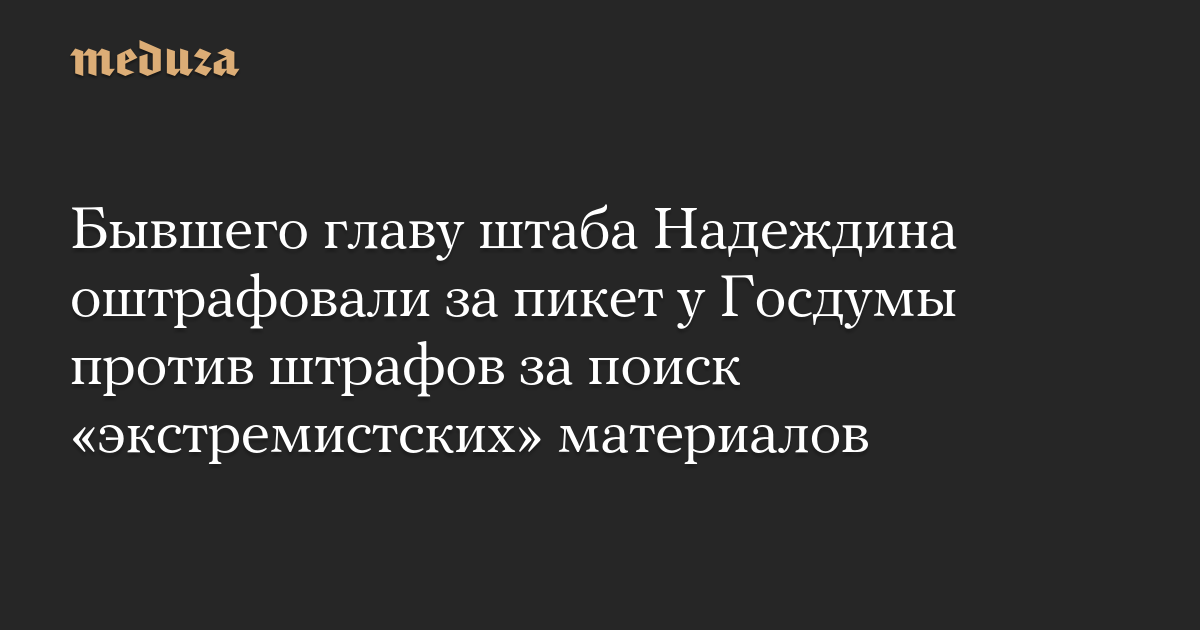 Бывшего главу штаба Надеждина оштрафовали за пикет у Госдумы против штрафов за поиск «экстремистских» материалов