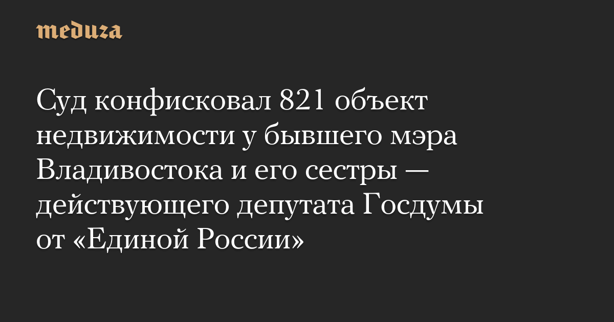 Суд конфисковал 821 объект недвижимости у бывшего мэра Владивостока и его сестры — действующего депутата Госдумы от «Единой России»