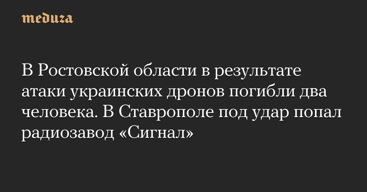 В Ростовской области в результате атаки украинских дронов погибли два человека. В Ставрополе под удар попал радиозавод «Сигнал»