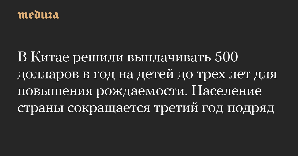 В Китае решили выплачивать 500 долларов в год на детей до трех лет для повышения рождаемости. Население страны сокращается третий год подряд