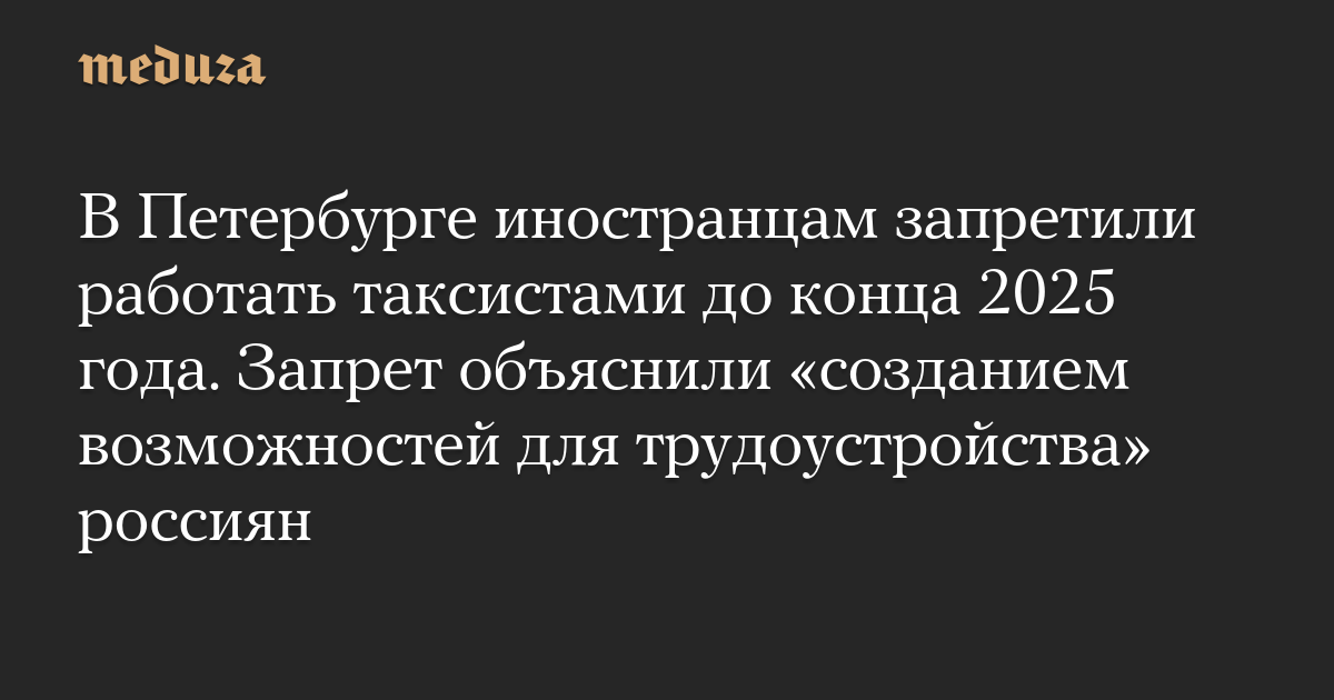 В Петербурге иностранцам запретили работать таксистами до конца 2025 года. Запрет объяснили «созданием возможностей для трудоустройства» россиян