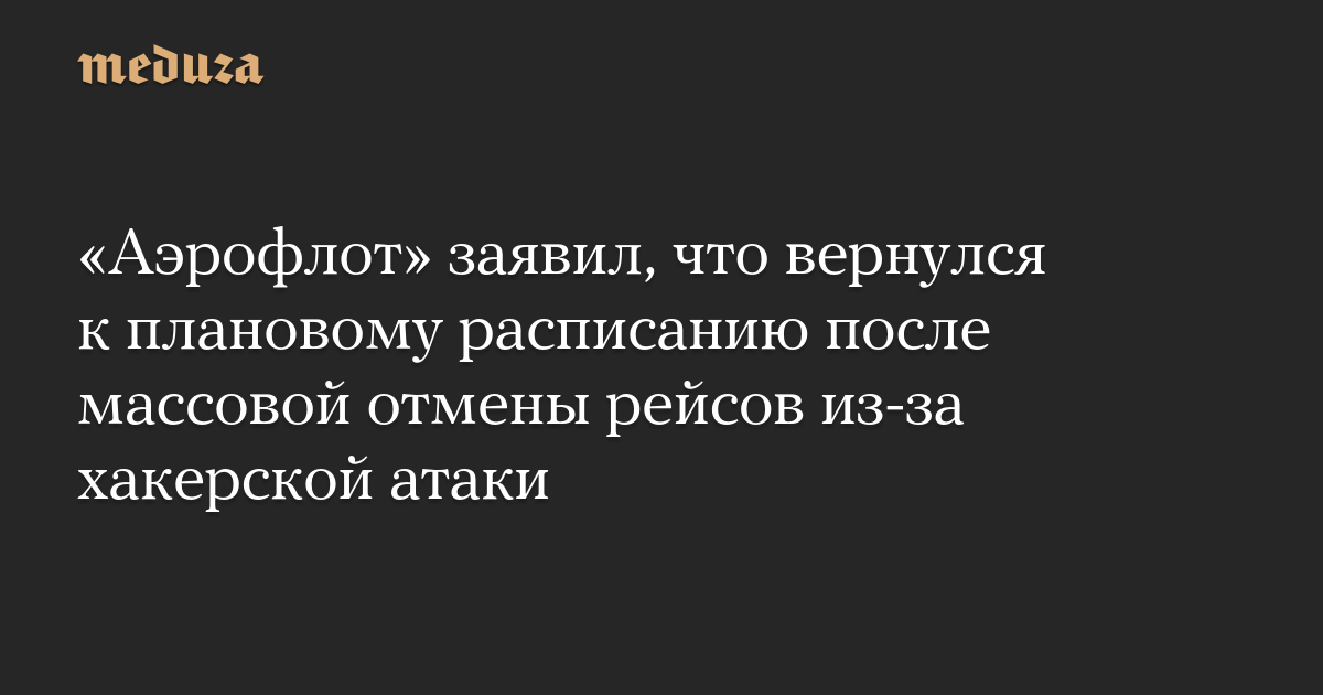 «Аэрофлот» заявил, что вернулся к плановому расписанию после массовой отмены рейсов из-за хакерской атаки