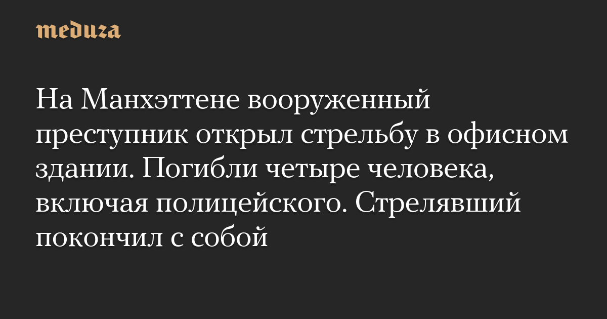 На Манхэттене вооруженный преступник открыл стрельбу в офисном здании. Погибли четыре человека, включая полицейского. Стрелявший покончил с собой