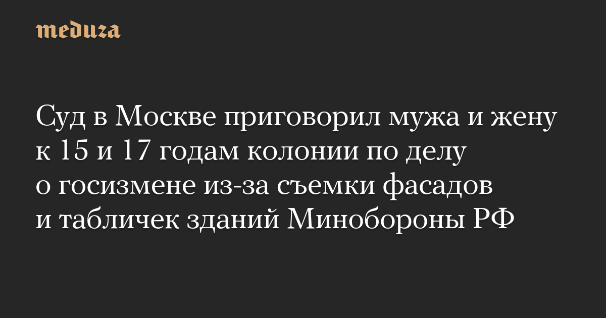 Суд в Москве приговорил мужа и жену к 15 и 17 годам колонии по делу о госизмене из-за съемки фасадов и табличек зданий Минобороны РФ