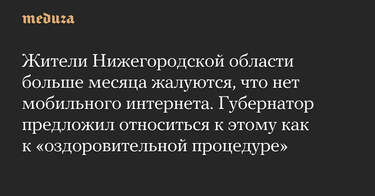 Жители Нижегородской области больше месяца жалуются, что нет мобильного интернета. Губернатор предложил относиться к этому как к «оздоровительной процедуре»