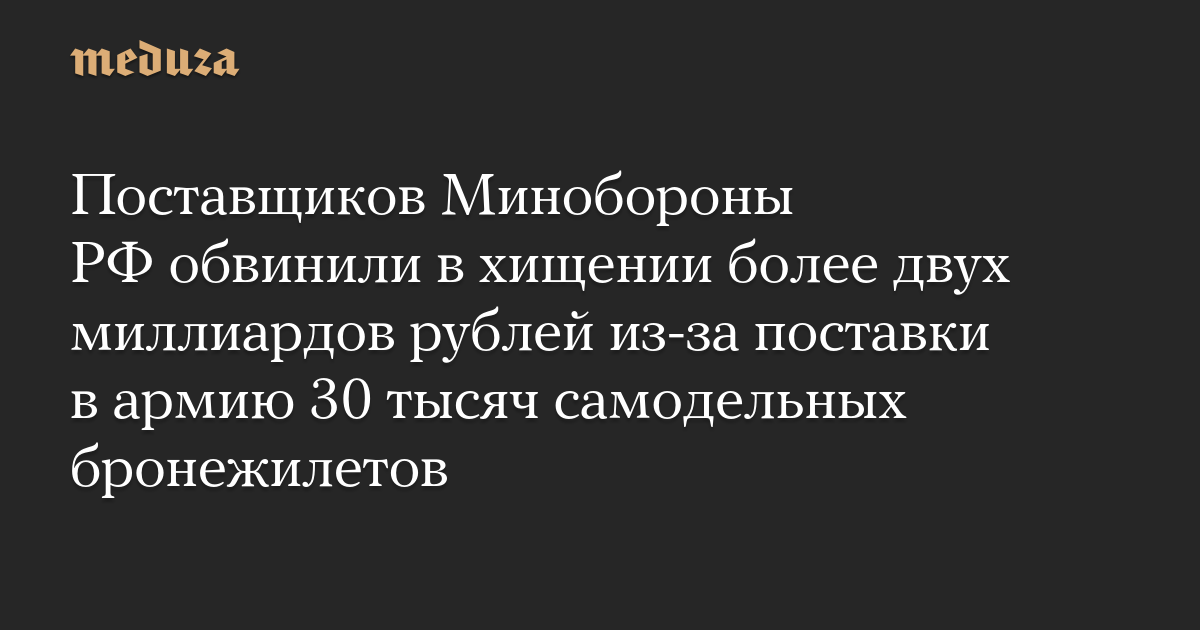 Поставщиков Минобороны РФ обвинили в хищении более двух миллиардов рублей из-за поставки в армию 30 тысяч самодельных бронежилетов