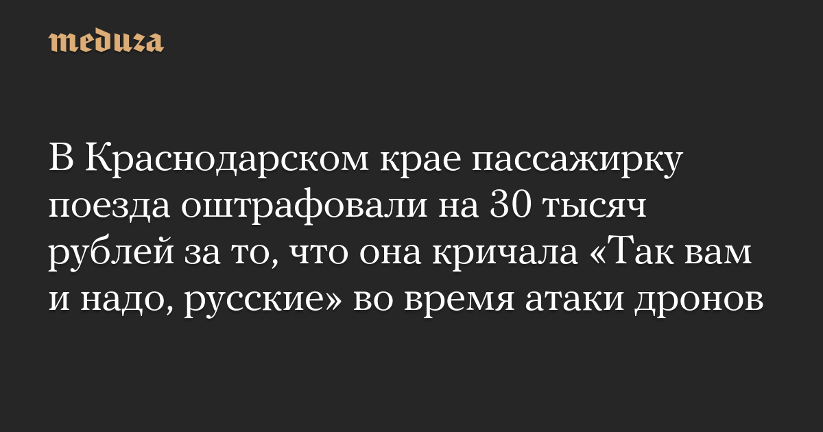 В Краснодарском крае пассажирку поезда оштрафовали на 30 тысяч рублей за то, что она кричала «Так вам и надо, русские» во время атаки дронов