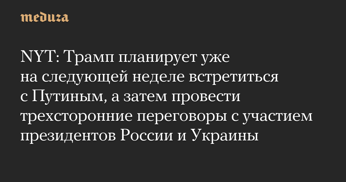 NYT: Трамп планирует уже на следующей неделе встретиться с Путиным, а затем провести трехсторонние переговоры с участием президентов России и Украины