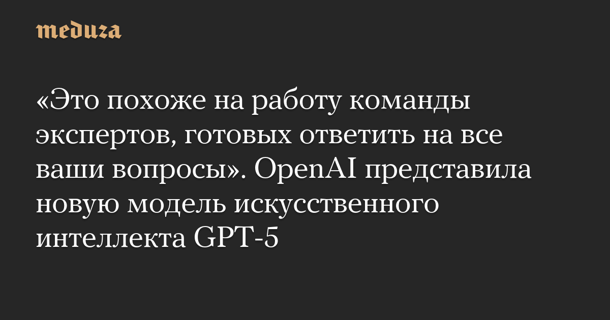 «Это похоже на работу команды экспертов, готовых ответить на все ваши вопросы». OpenAI представила новую модель искусственного интеллекта GPT-5