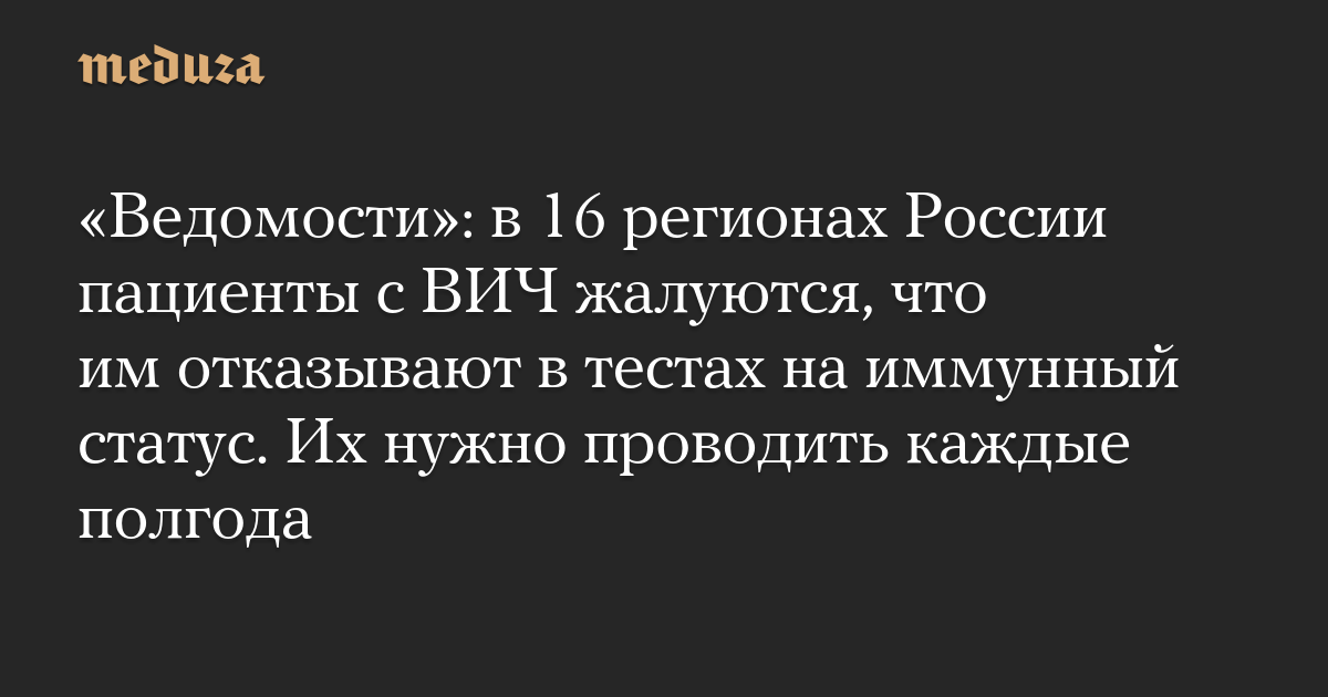 «Ведомости»: в 16 регионах России пациенты с ВИЧ жалуются, что им отказывают в тестах на иммунный статус. Их нужно проводить каждые полгода
