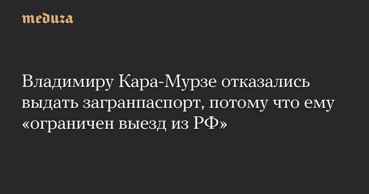Владимиру Кара-Мурзе отказались выдать загранпаспорт, потому что ему «ограничен выезд из РФ»