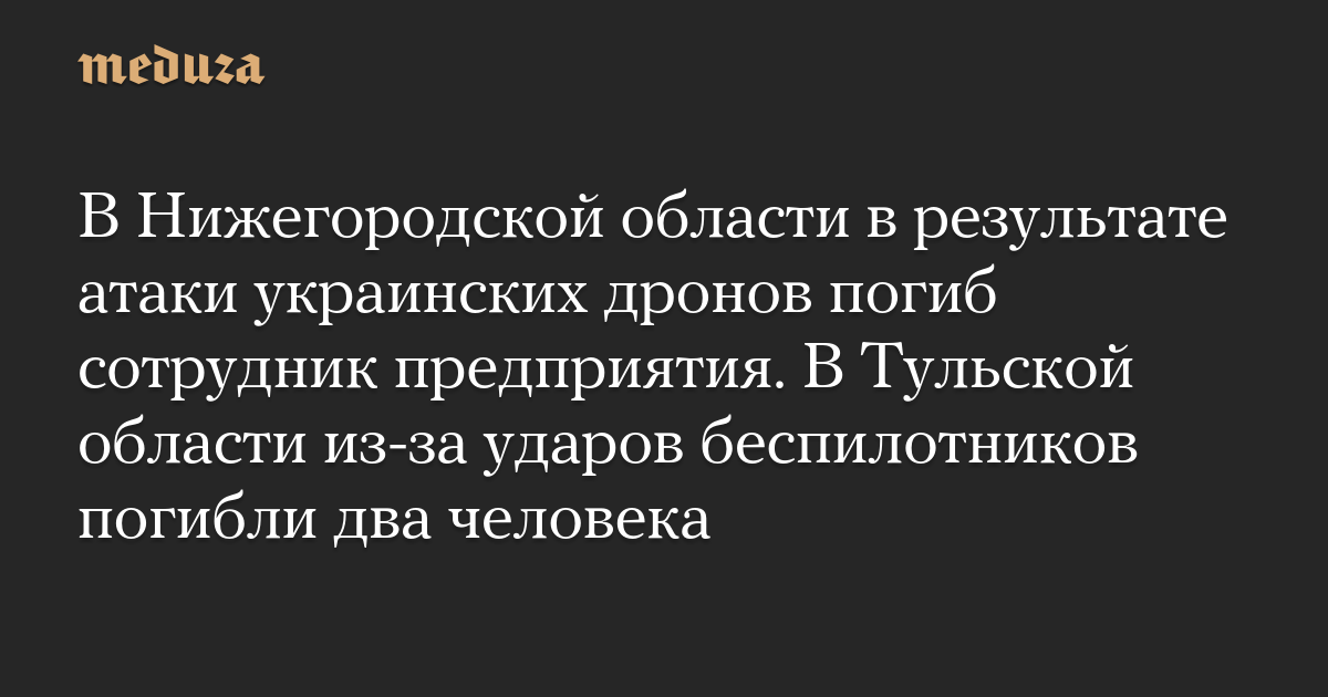 В Нижегородской области в результате атаки украинских дронов погиб сотрудник предприятия. В Тульской области из-за ударов беспилотников погибли два человека