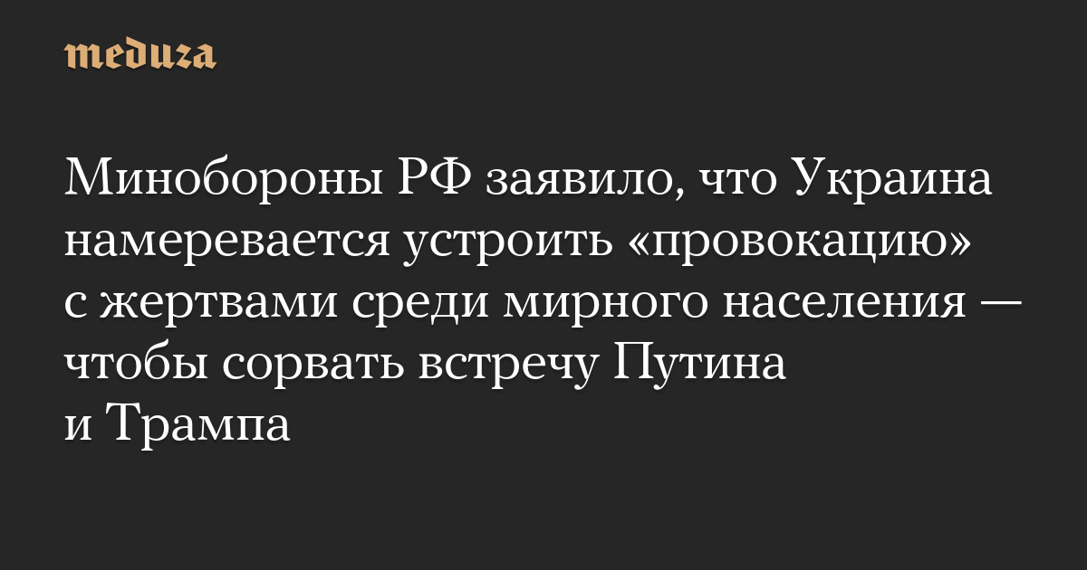 Минобороны РФ заявило, что Украина намеревается устроить «провокацию» с жертвами среди мирного населения — чтобы сорвать встречу Путина и Трампа