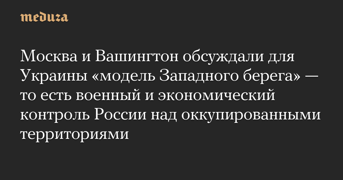 Москва и Вашингтон обсуждали для Украины «модель Западного берега» — то есть военный и экономический контроль России над оккупированными территориями
