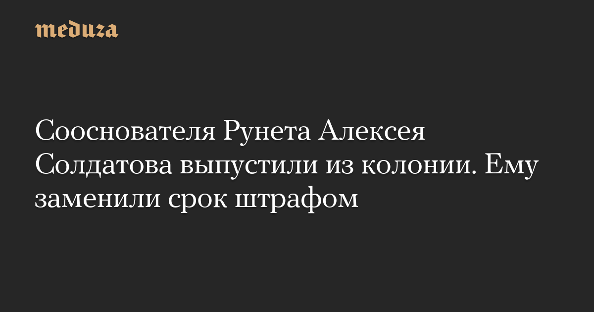 Сооснователя Рунета Алексея Солдатова выпустили из колонии. Ему заменили срок штрафом