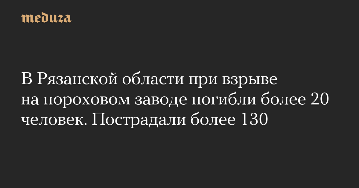 В Рязанской области при взрыве на пороховом заводе погибли более 20 человек. Пострадали более 130