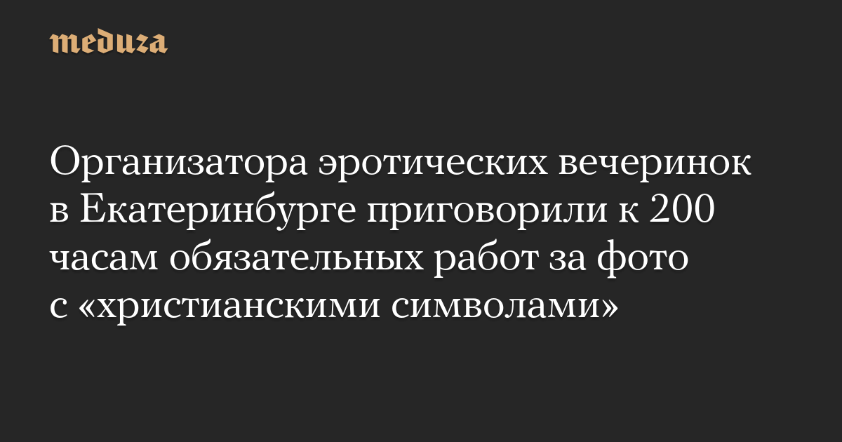 Организатора эротических вечеринок в Екатеринбурге приговорили к 200 часам обязательных работ за фото с «христианскими символами»