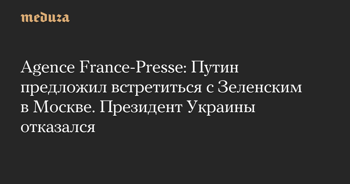 Agence France-Presse: Путин предложил встретиться с Зеленским в Москве. Президент Украины отказался