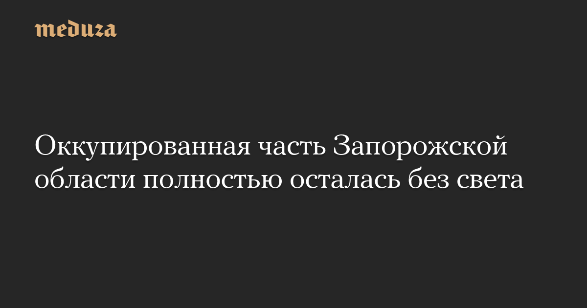 Оккупированная часть Запорожской области полностью осталась без света