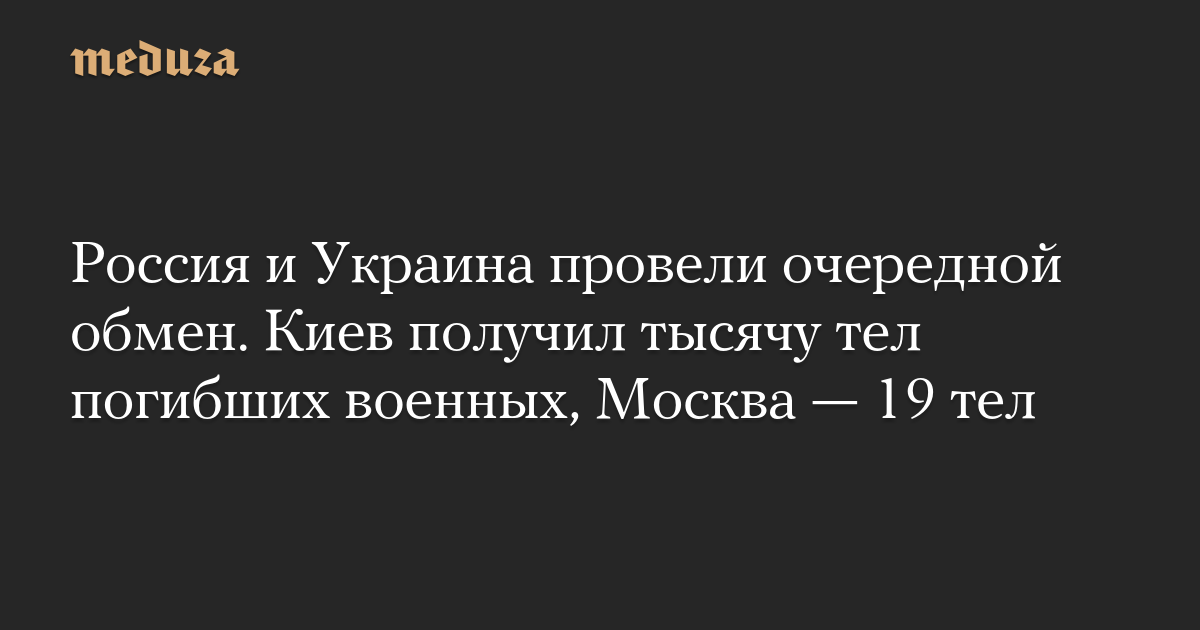 Россия и Украина провели очередной обмен. Киев получил тысячу тел погибших военных, Москва — 19 тел