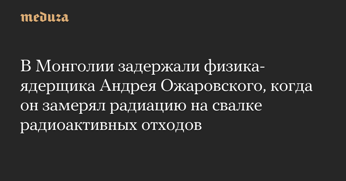 В Монголии задержали физика-ядерщика Андрея Ожаровского, когда он замерял радиацию на свалке радиоактивных отходов