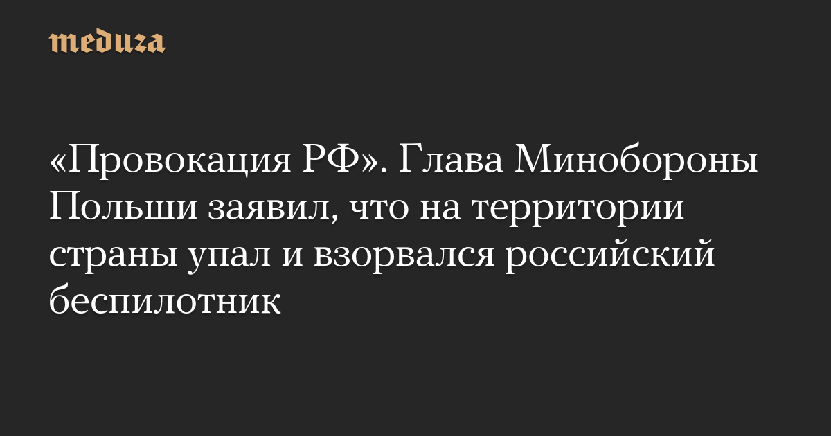 «Провокация РФ». Глава Минобороны Польши заявил, что на территории страны упал и взорвался российский беспилотник