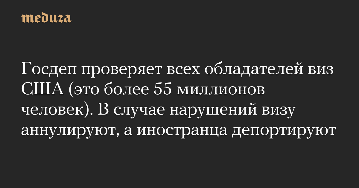 Госдеп проверяет всех обладателей виз США (это более 55 миллионов человек). В случае нарушений визу аннулируют, а иностранца депортируют